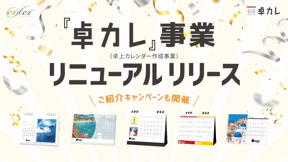 株式会社エンターは、これまでの経験と実績を活かし、卓上カレンダー作成事業「卓カレ」を正式にリニューアルし、そのサービスを2025年10月より開始します。この新たなスタートは、エンライズグループが展開するWEB事業の一環として、特にカレンダー制作に特化した新たな体験を提供することを目的としています。