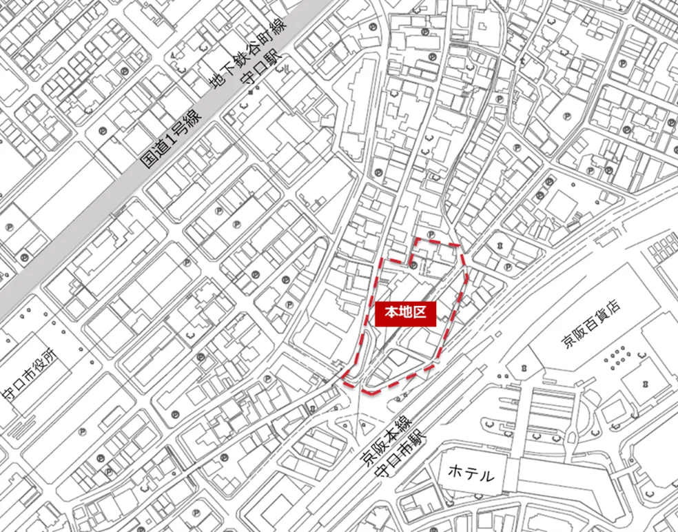 守口市駅から徒歩わずか1分に位置するこの地区は、「守口都市核周辺誘導促進区域」として商業エリア、教育文化、地域交流の場を持ち、人々が集まりやすい環境が求められています。さらに、緑地やオープンスペースの創出により、日常的な賑わいを生むことを目指しています。2023年には、新たな街並みの形成を目指すリノベーション戦略も策定されました。