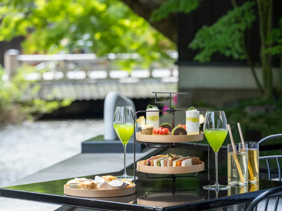 The Shinmonzenは、祇園の中心に位置し、安藤忠雄氏による日本的なデザインに包まれたラグジュアリーホテルです。美しいバルコニー付きスイートからは祇園白川の景色が一望でき、宿泊客にはプライベートサービスも提供されます。この素晴らしいアフタヌーンティーは、日常を忘れさせてくれる特別な体験となることでしょう。