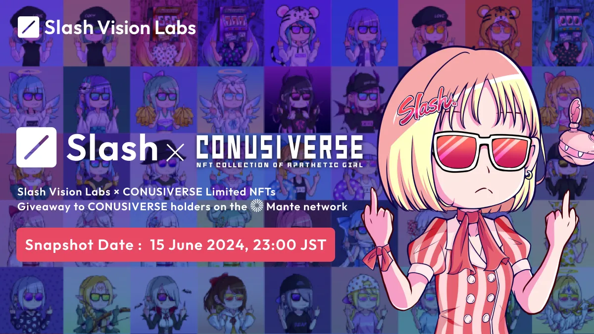 Slash Vision Labsは、個性的なNFTコレクション「CONUSIVERSE」とのコラボレーションを発表しました。このコラボレーションを通じて、Slash Vision Portal上で特別なユーティリティが付与されたKeyNFT「Alice CONUSI」が、CONUSIVERSE NFTホルダーにエアドロップされます。