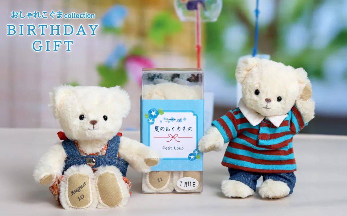この「おしゃれこぐまバースデイギフト」は、帰省・お中元・誕生日など、夏に贈り物を贈るシーンにぴったりです。特別な記念日をプリントされたベアは、見た目だけでなく心にも残る贈り物になることでしょう。専用のクリアボックスと「夏のおくりもの」と記された熨斗も付いているため、そのまま渡すこともできる手軽さも嬉しいポイントです。