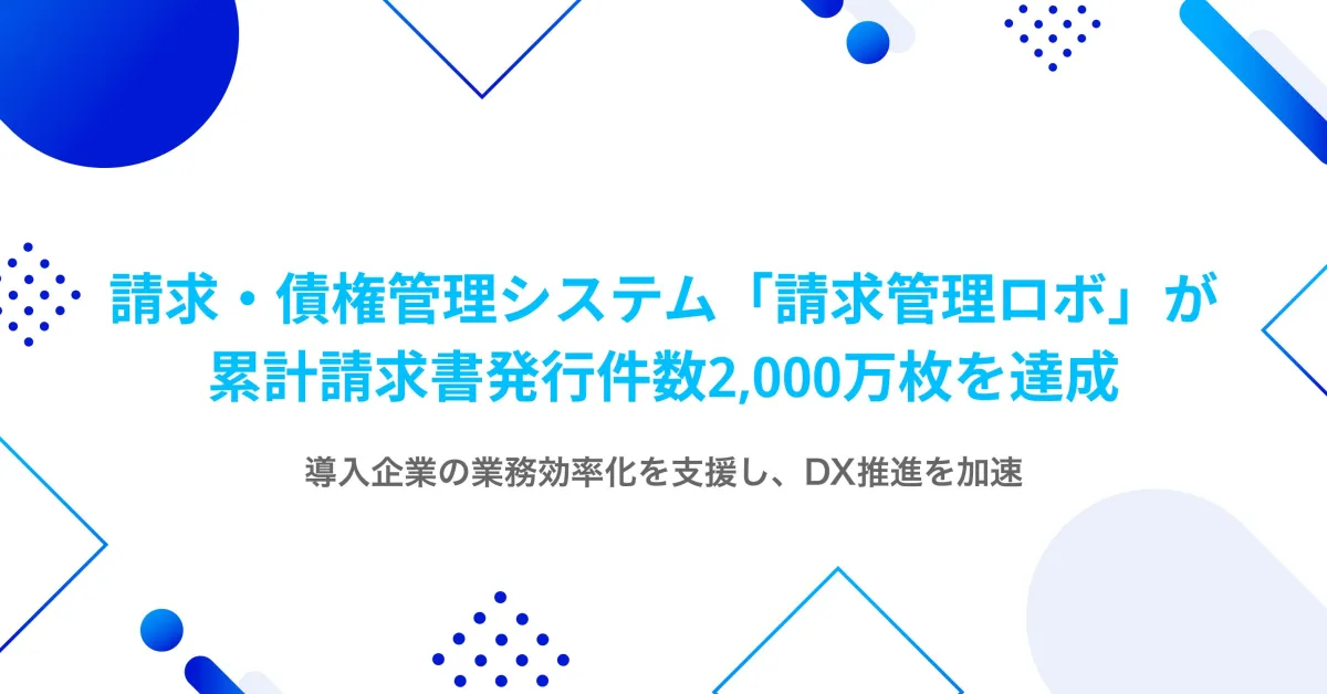 株式会社ROBOT PAYMENTが提供する「請求管理ロボ」が、累計請求書発行件数が2,000万枚を達成しました。このシステムは、企業の請求や債権管理業務を効率化することを目的に開発されています。手作業で行ってきた請求書の発行や集金、催促などを自動化し、業務の負荷を大幅に削減することが特徴です。
