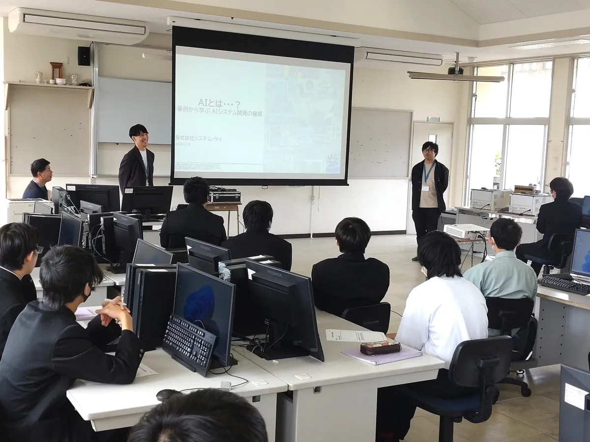 この日は、システム・ケイの社員が二名登壇し、ITやAIに関する講演とワークショップ、アイデアソンを実施しました。イベントには、電気情報科の1年生から3年生までの学生29名と教職員5名が参加し、未来の技術について学びました。その中でも「AIを使って宮古島をより魅力ある島にするには」というテーマのアイデアソンは、学生たちが地域の特性を考慮しながらITを活用する方法を考える貴重な機会でした。
