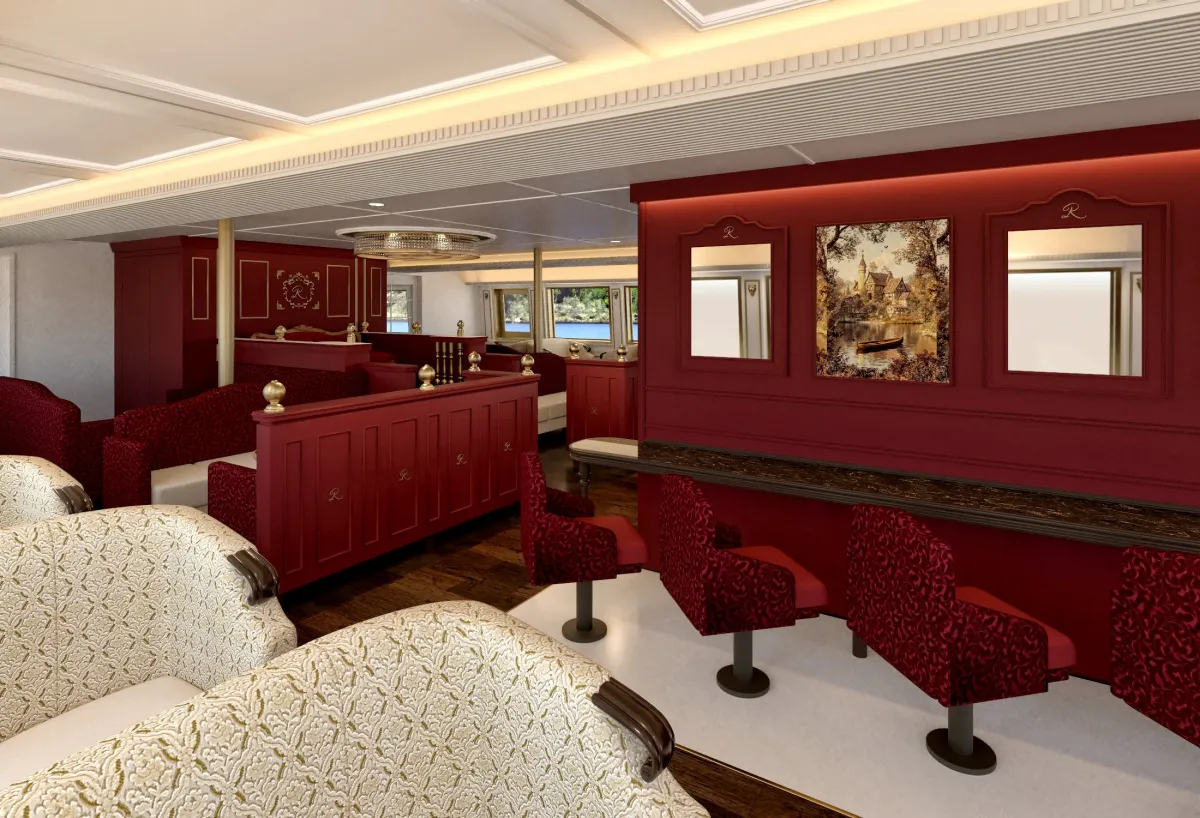 リニューアル工事では、近世フランスの華やかさをテーマにしたワンランク上の特別なクルーズを提供します。特別船室の新たなデザインは、船体と調和する優れた白色に、深みのあるルージュレッドを加え、視覚的にも豪華さを演出します。また、18世紀フランスの文化を反映したロココ様式の優美な曲線を持つ家具や絵画も設置され、洗練された空間となることでしょう。
