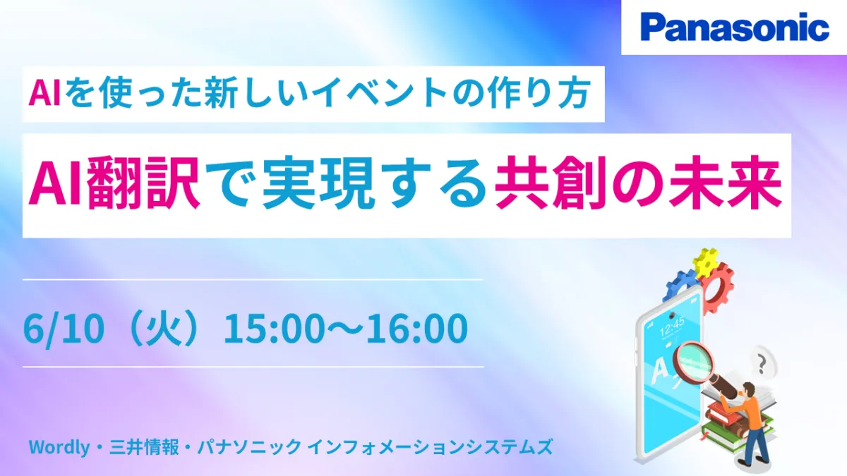 2025年6月10日、オンラインにて開催される「AIを使った新しいイベントの作り方」ウェビナーの詳細が発表されました。このイベントは、パナソニック インフォメーションシステムズ株式会社が主催し、Wordly, Inc.および三井情報株式会社が共催します。参加は無料ですが、事前の申し込みが必要です。
