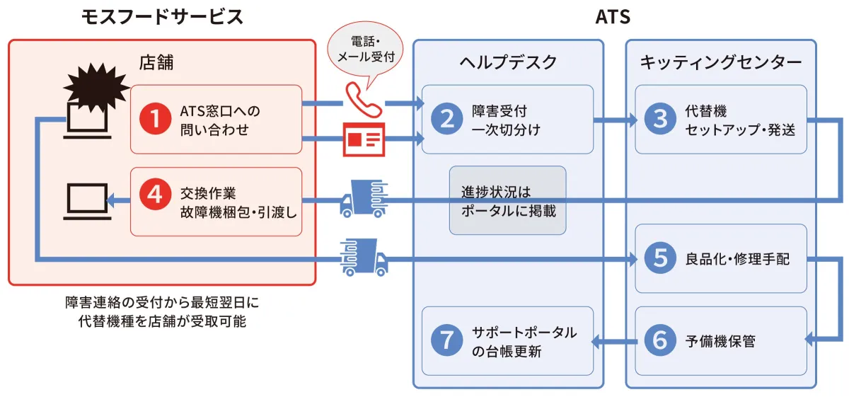 店舗スタッフは、洗練された手順書に基づきPCの導入やセットアップを進めることで、迷うことなく作業を行えるようになりました。また、オンサイト保守を撤廃し、「センドバック保守」へと移行することで、PCの不調から復旧までの時間を大幅に短縮。これにより、サポートの品質向上も図られることとなりました。