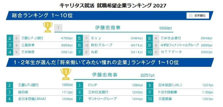 株式会社キャリタスが、2027年に卒業予定の学生を対象に実施した「キャリタス就活 就職希望企業ランキング2027」の調査結果が発表されました。この調査結果は、学生にとって今後のキャリア選択に大きな影響を与えることから注目されています。
