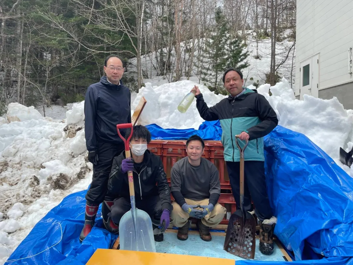 このプロジェクトの特徴は、雪の中という天然の冷蔵庫で熟成させる点です。外気温が-10℃を下回る中で行われる掘り出し作業は、徹底した管理のもとで行われます。雪の中は約0℃で湿度も90%以上を保たれ、酒を熟成させる環境としては申し分ありません。