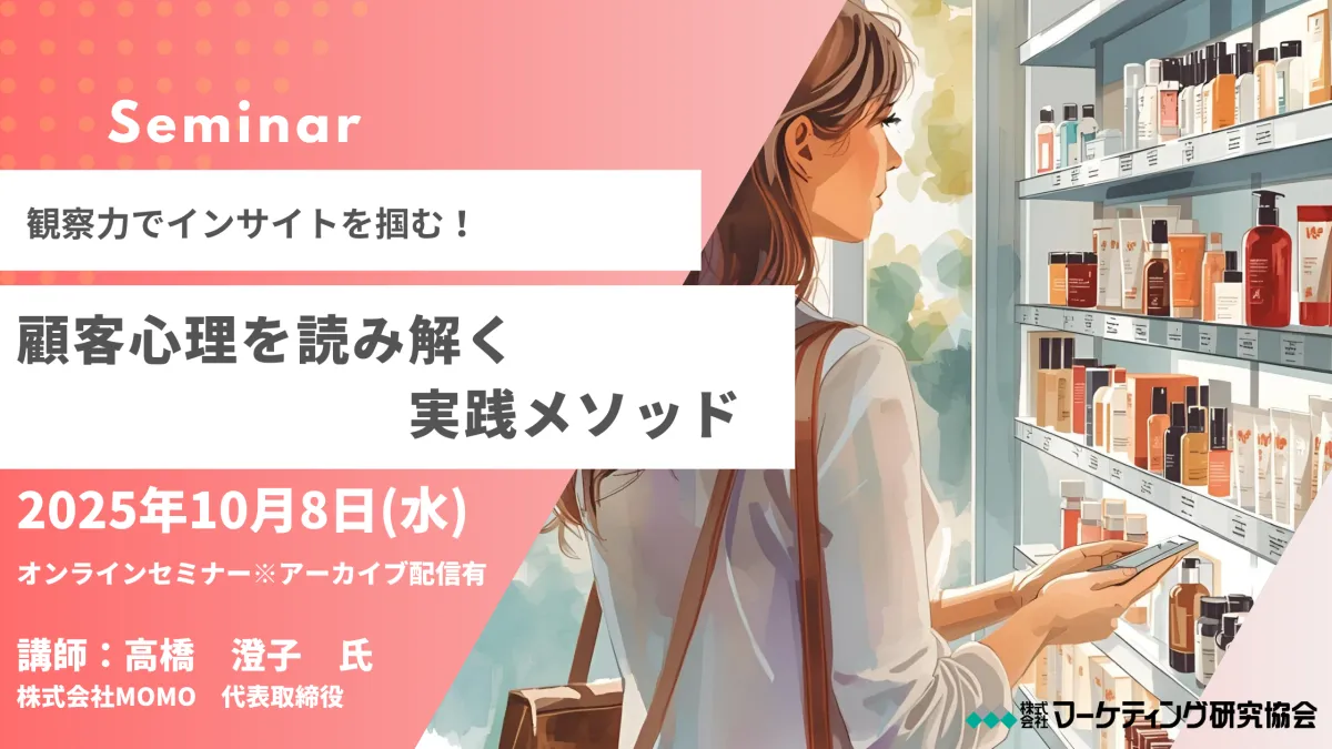 2025年10月8日、オンラインセミナー『観察力でインサイトを掴む!顧客心理を読み解く実践メソッド』が開催されます。このセミナーは、顧客の「本音」や商品が「選ばれる理由」を深く理解するための実践的な方法について学ぶ機会を提供します。