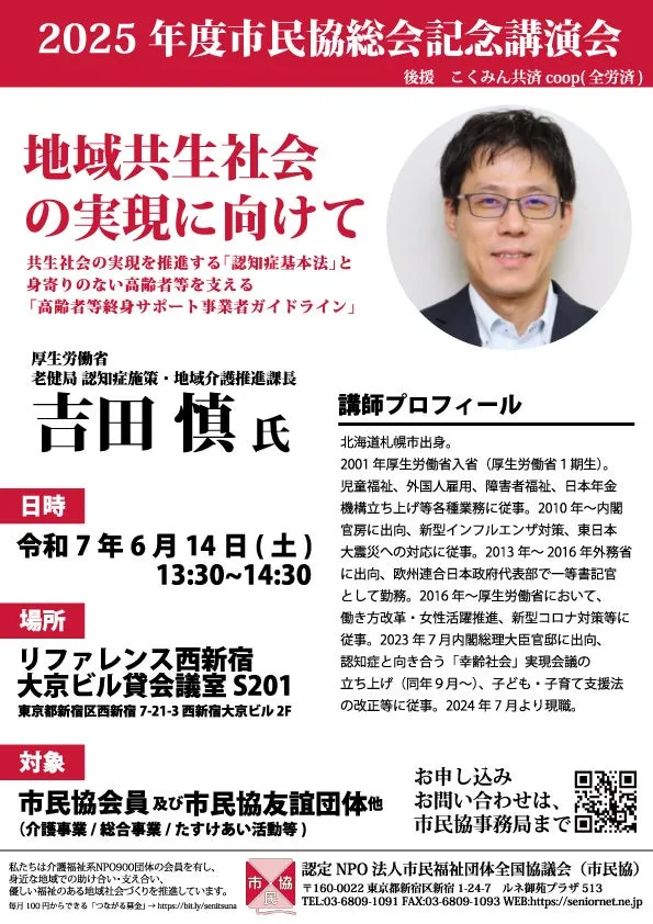 2025年6月14日、東京都新宿区にあるリファレンス西新宿大京ビルで、重要なイベントが開催されます。このイベントは市民福祉団体全国協議会による総会記念講演であり、「地域共生社会の実現に向けて」というテーマのもと、共生社会を推進する「認知症基本法」と身寄りのない高齢者を支える「高齢者等終身サポート事業者ガイドライン」について議論されます。
