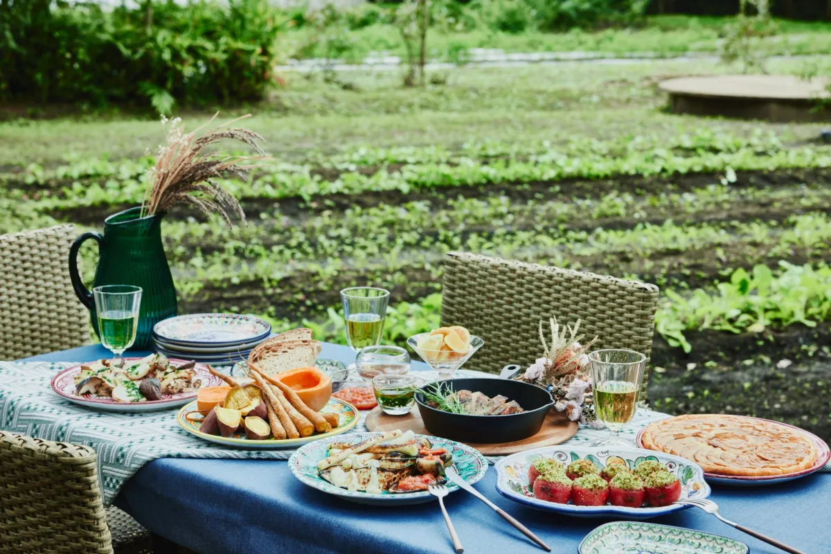 「YATAI to FARM」は、自然に囲まれた特等席で味わえる究極のブランチです。青々とした稲田が黄金色に変わる美しい景色を眺めながら、旬の野菜を一皿ずつ提供されます。移りゆく季節を肌で感じつつ、特別な食事を楽しむことができるのが、このプロジェクトの魅力です。