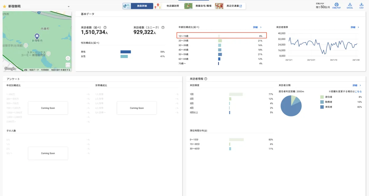従来のサービスでは20歳以上のユーザー層の分析が中心でしたが、新バージョンでは10代データも追加されます。これによりZ世代に特化したデータ分析が可能となり、特に若者の行動パターンが把握しやすくなります。