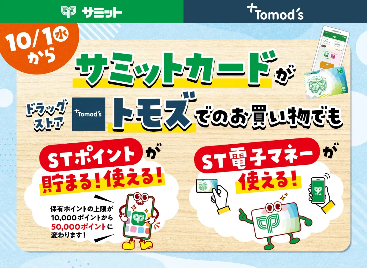 また、サミットカードにはST電子マネー機能もあり、この機能が同様にトモズ店舗でも利用できるようになります。電子マネーの利用で、現金を持たずとも簡単に支払いができるため、特に忙しい日常の中で大いに役立つことでしょう。