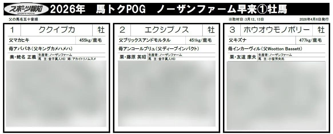 馬トクPOGプリント2026(ノーザンF早来編)