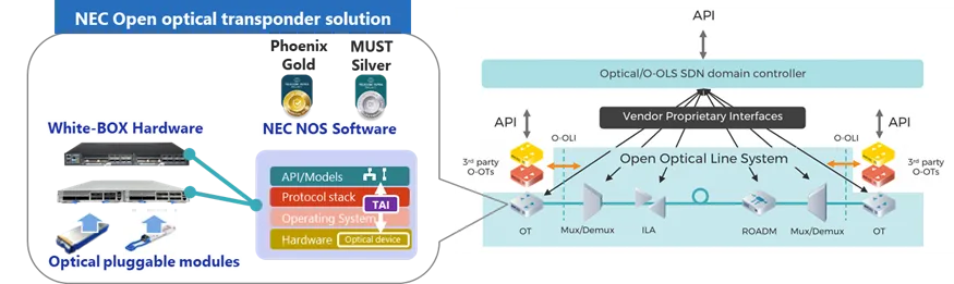 NECのネットワークオペレーティングシステム(NOS)が、Telecom Infra Project(TIP)によるテストで認められ、TIP MUST Silverバッジを獲得しました。このバッジは、SDN(ソフトウェア定義ネットワーク)を利用した次世代のネットワーク技術基準を満たしていることを証明しています。特に、NECのNOSは、TIPの「Phoenix」と称される400G光トランスポンダソリューションに適用されており、商業用システムとしても展開されています。