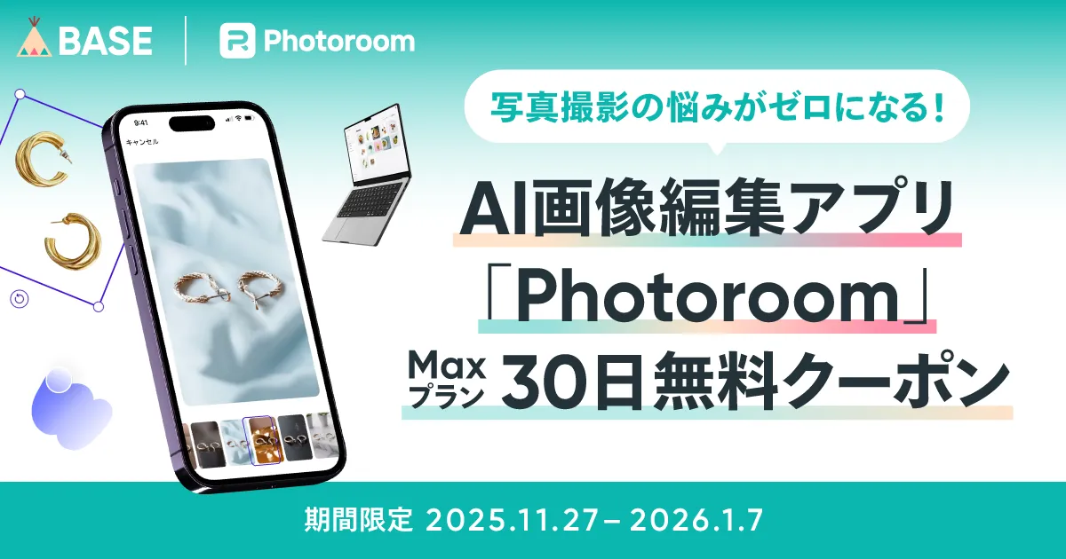 キャンペーンは2023年11月27日から2024年1月7日までの期間限定で、対象は「BASE」を利用しているすべてのショップオーナーです。この特典を生かして、高品質な商品ビジュアルの制作に挑戦してみてはいかがでしょうか?