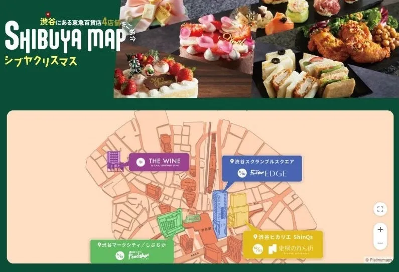 渋谷で展開するクリスマス関連のフード情報は「シブヤクリスマスマップ」を通じて確認できます。このデジタルマップでは、ケーキやオードブル、ギフトのWEB予約情報が容易に得られ、当日予約なしで購入できる商品も紹介されます。これにより、スムーズにクリスマスを楽しむことが可能です。対象店は、渋谷 東急フードショー、東急フードショーエッジなどです。
