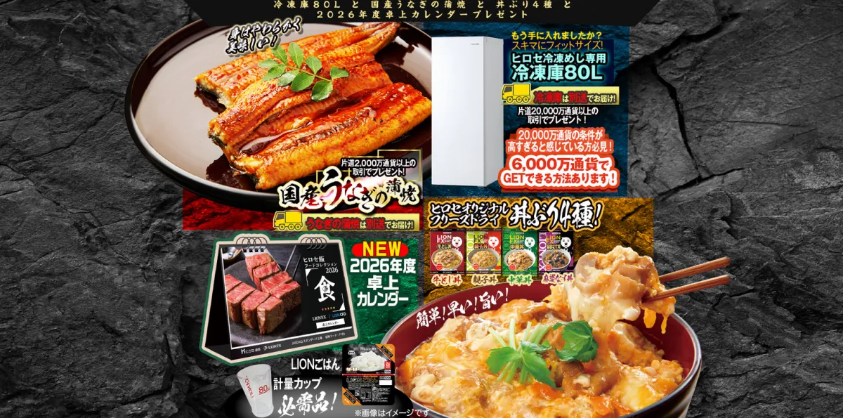 ヒロセ通商株式会社が提供する「LION FX」は、2025年11月3日から「冷凍庫80Lと国産うなぎの蒲焼、丼ぶり4種、2026年度卓上カレンダー」のプレゼントキャンペーンを開始します。このキャンペーンは、豪華な商品が手に入るチャンスで、多くの人々から注目を集めています。