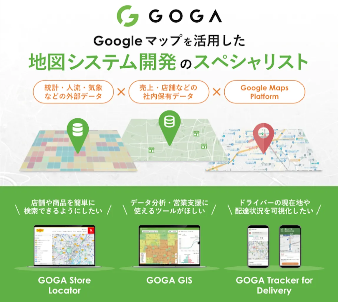 展覧会では、Google Mapsの「Places Insights」と、GOGAが展開する位置情報分析ツール「GOGA GIS」との連携を通じて、戦略的な店舗開発のアプローチを披露します。このソリューションは、Googleが保持する膨大な施設データと、自社の売上データや統計情報との統合によって、客観的で高精度な新規出店の立地選定や、既存店舗の商圏分析を行うことを可能にします。この取り組みは、データドリブンな意思決定を実現し、ビジネスの効果を高めます。