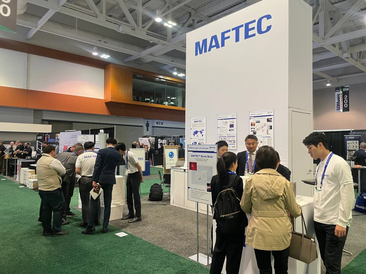 展示会では、マフテックの主力商材である断熱材「MAFTEC™」が目玉となり、加えて新製品としてスキッドポストのための「スキッドポストブロック」や、バーナ燃焼部を囲む「バーナブロック」も展示されました。これらの製品は耐熱性や強度に優れた特性を持ち、鉄鋼用加熱炉において重要な役割を果たすことが期待されています。
