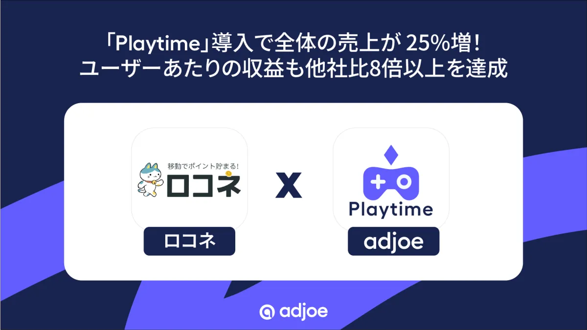『ロコネ』は、既存の広告収益の変動が大きく、四半期ごとの売上予測に苦しんでいました。また、ユーザーがポイントを獲得するプロセスに時間がかかりすぎて、心理的な障壁が高くなっています。そこで、新たにadjoeの提供する『Playtime』を導入することを決定しました。