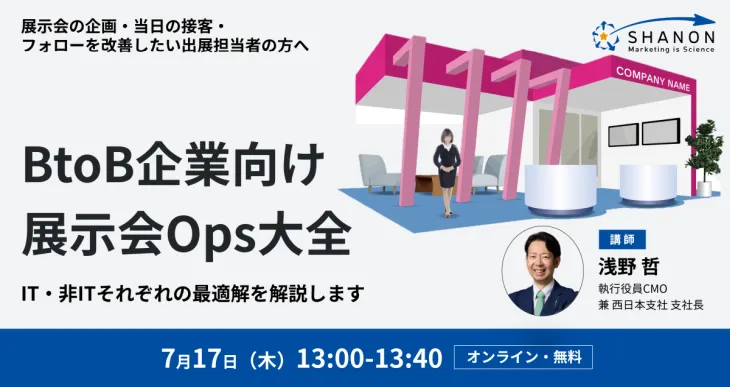 単なる理想だけでは成果を上げることは難しいため、企業は「何をどの程度まで」変革することができるかを真剣に考える必要があります。そこで、今回のウェビナーでは、私たち株式会社シャノンの事例を用いながら、IT系・非IT系企業、それぞれにとって非常に役立つ展示会Opsの設計について詳しく解説いたします。この内容は、マーケティング部門や経営企画部門の担当者にとって、今後の展示会出展戦略を見直す良い機会となるでしょう。