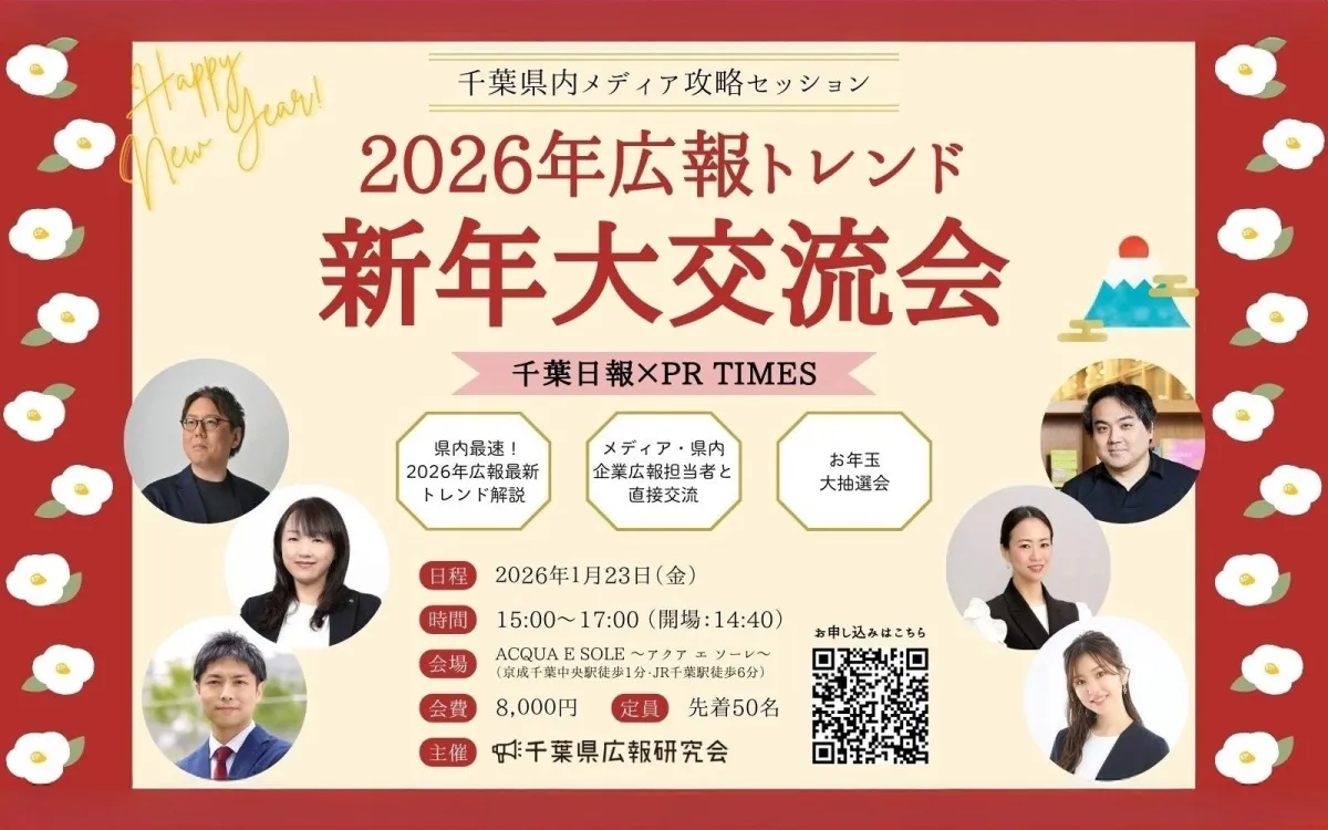 千葉県広報研究会は、2026年1月23日(金)に「新年大交流会2026」を開催します。このイベントは広報に関心を持つ方々にとって、最新の広報トレンドを学ぶ貴重な機会となります。