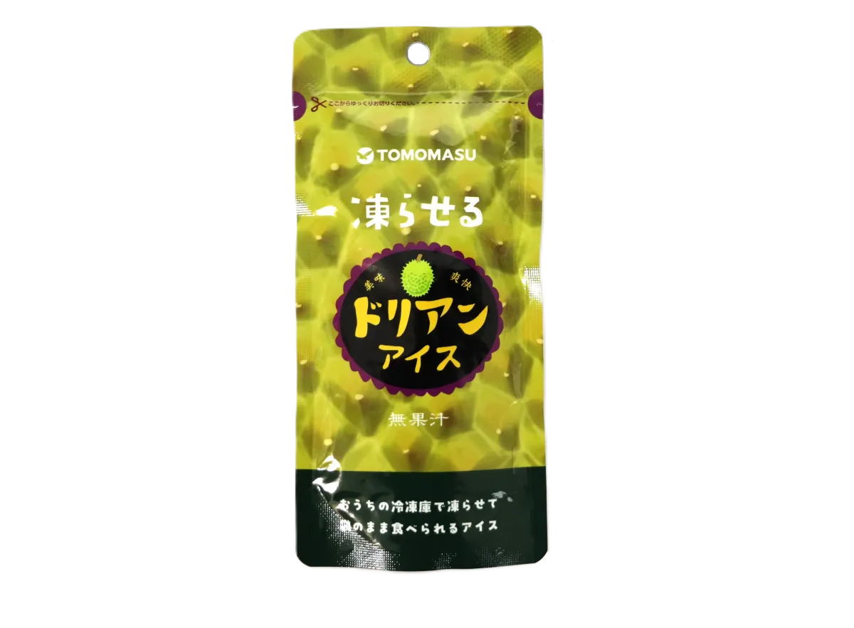 香りの再現: ドリアン独特の香りが封を開けた瞬間に広がります。香りの配合は特に緻密に計算され、凍ったアイスでもその存在感を失わないように作られています。