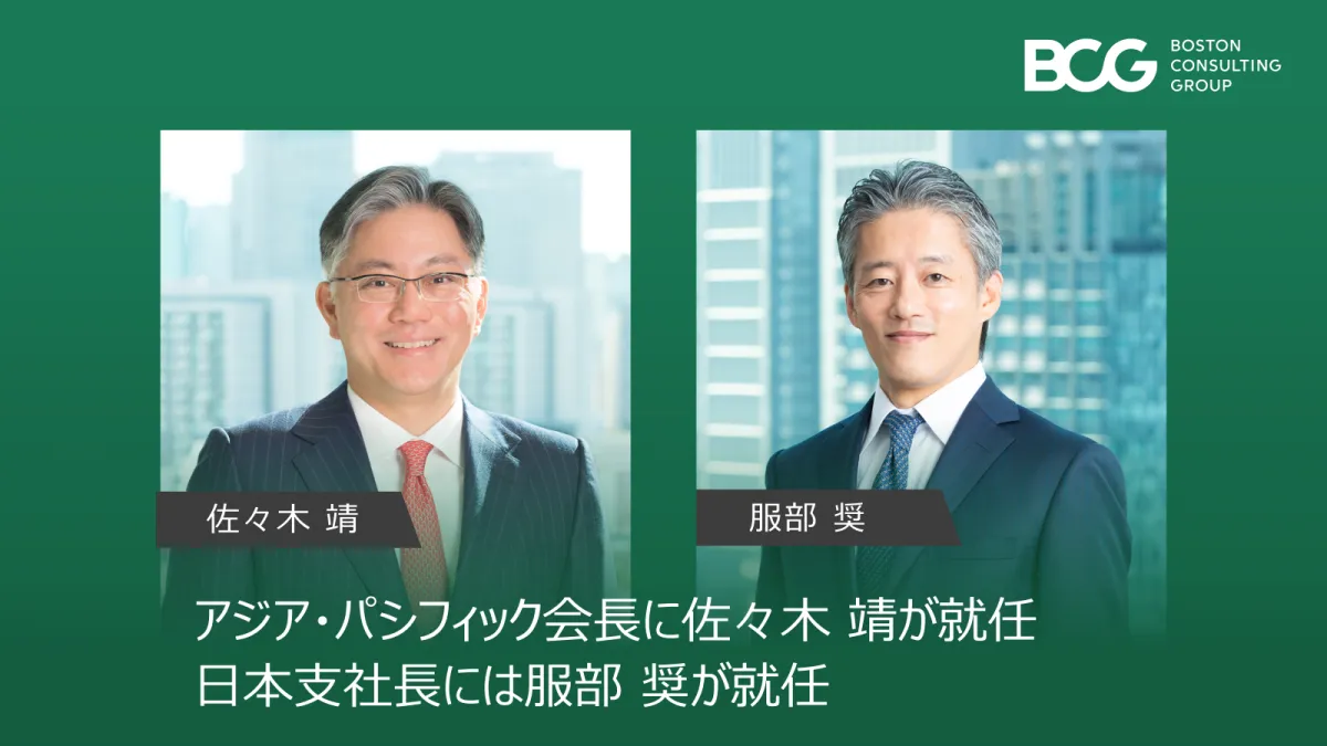 経営コンサルティングファームのボストン コンサルティング グループ(BCG)は、2025年7月1日付で新たなリーダーシップ体制を発表しました。佐々木 靖氏がアジア・パシフィック地域の会長に就任し、服部 奨氏が日本支社長兼北東アジア総責任者に就任します。この決定はBCGの60年以上の歴史の中で、日本人がアジア・パシフィック会長に抜擢された初の事例となります。