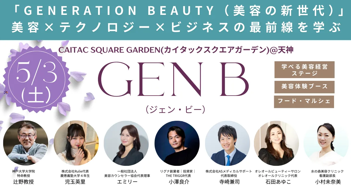 『GEN B』は、2025年5月3日(土曜日)に福岡市のCAITAC SQUARE GARDENで開催予定です。このイベントは、美容・経営セミナーや未来を見据えた美容体験、さらには地域の食材を使ったフードマルシェなど、多様なプログラムが用意されています。特に、学生から一般の方まで参加可能で、学生は500円というリーズナブルな価格で最新の美のトレンドを学ぶことができるのが魅力です。