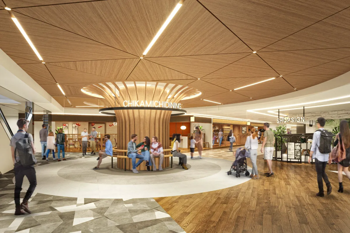 次にリニューアルオープン予定の『だての辻』には、大きなシンボルツリーが設置され、待ち合わせやショッピングの合間にちょうど良い憩いの場が生まれる予定です。このゾーンは、トレンド感のある店舗が揃い、洗練された空間となるでしょう。