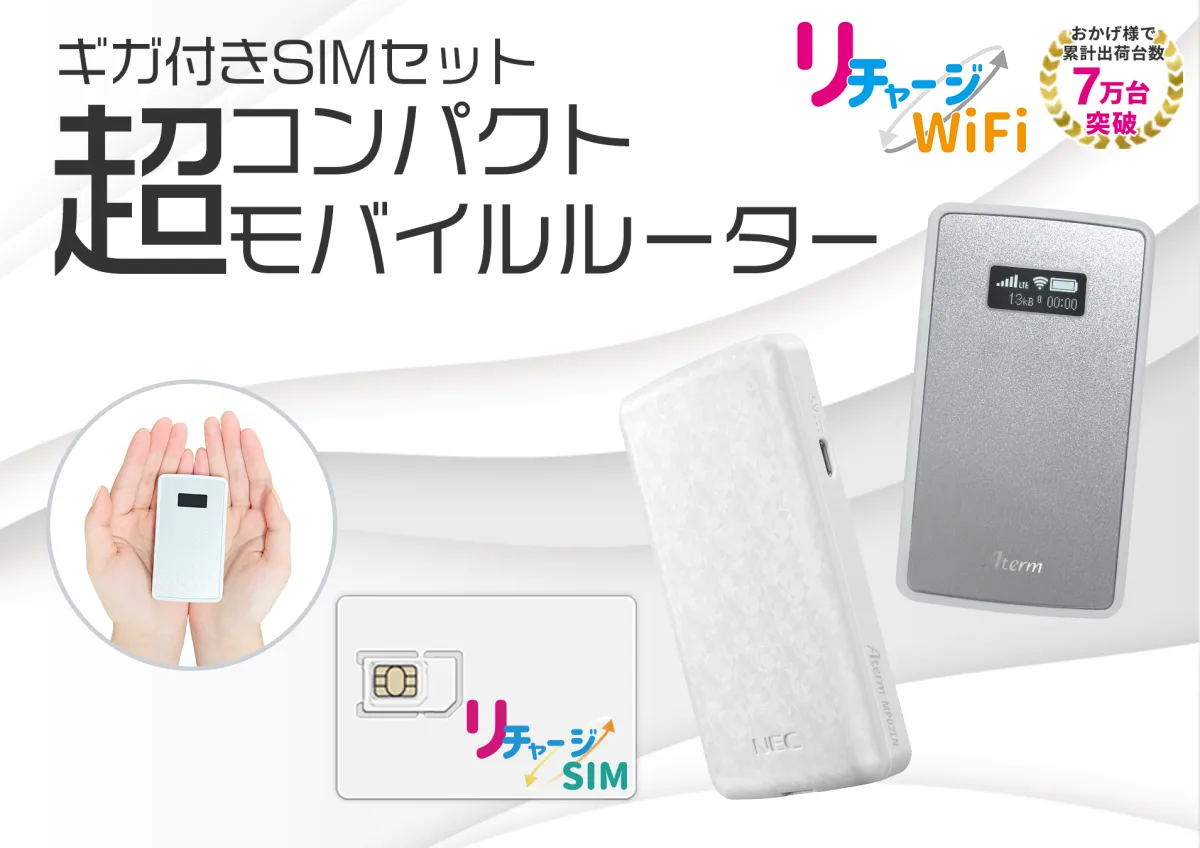 株式会社カウスメディアが提供する「リチャージWiFi」から、新ブランドの「リチャージSIM」が登場しました。新たなセット商品として、NEC製の超コンパクトWiFi端末「MP02LN」とリチャージSIMが販売開始されます。