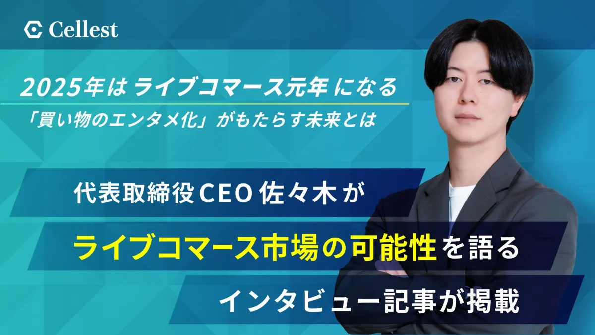 株式会社Cellestは、日本のライブコマース市場において注目すべきスタートアップとして、2025年を“ライブコマース元年”と位置付け、業界のインフラ化を目指しています。2025年3月25日に発売されるForbes JAPANの5月号には、代表取締役CEOの佐々木宏志がこのビジョンについて語るタイアップ記事が掲載される予定です。