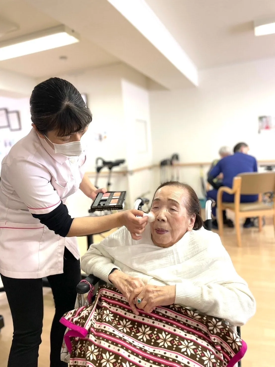 介護施設での勤務を経て、彼女は施設に「美容の日」を提案。入居者の笑顔を増やすことに尽力しています。