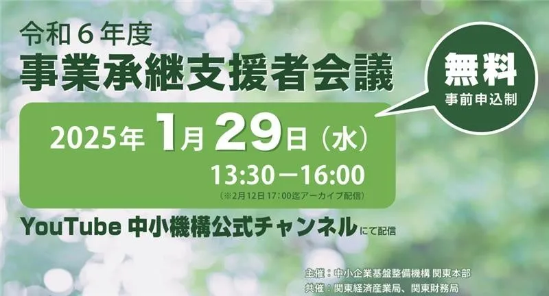 中小機構関東本部は、日本の中小企業が抱える課題に取り組むため、毎年恒例の「令和6年度事業承継支援者会議」を2025年1月29日(水曜)に開催します。本会議では、支援機関の事業承継計画の策定に焦点を当て、実際の支援事例を通じて、中小企業の未来について考えていきます。