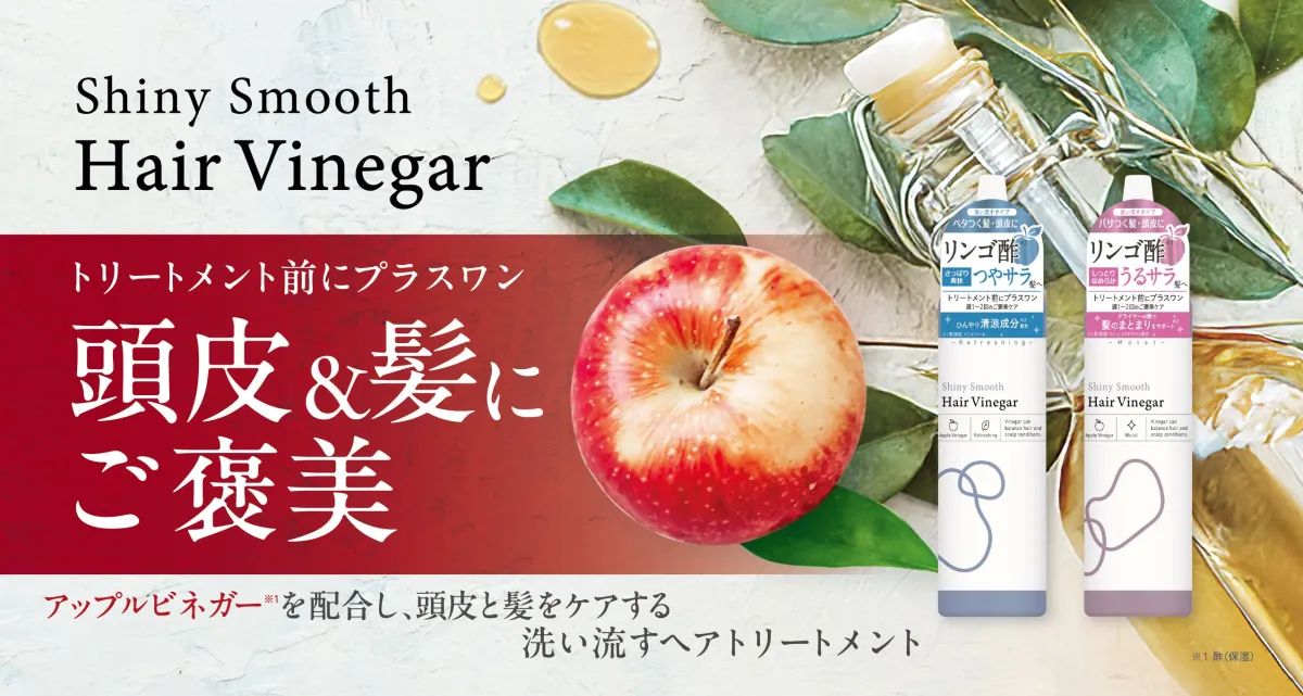 「シャイニースムースヘアビネガー」は、その名の通りアップルビネガーを配合した洗い流すタイプのトリートメントです。ビネガーは古くから髪に良い影響を与えるとされており、その効果は多くの美容法に取り入れられています。特にこの製品は、髪の不快感やベタつき、さらに気になるニオイにも対処するために設計されています。