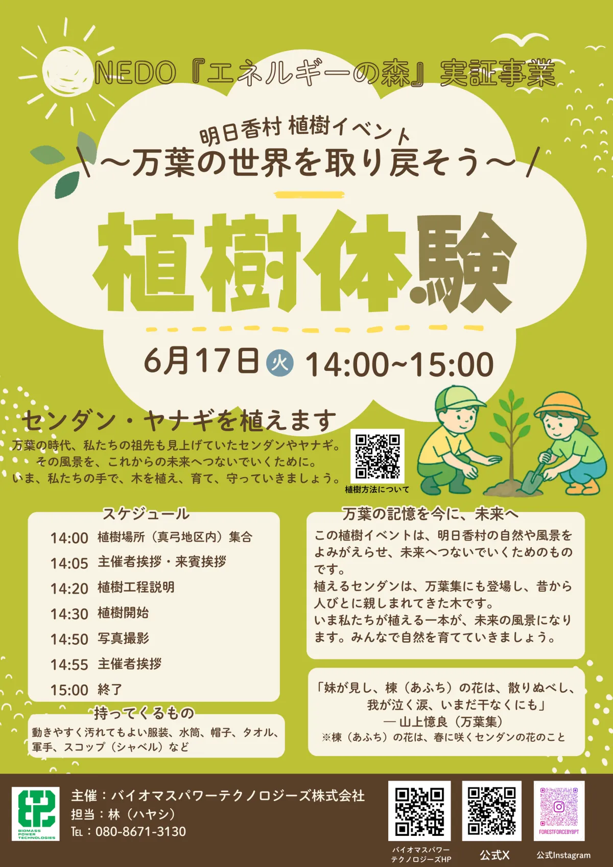 奈良県の明日香村で行われる植樹イベントは、地域のアイデンティティを大切にした取り組みとして注目を集めています。このイベントは、三重県松阪市に本社を置くバイオマスパワーテクノロジーズ株式会社が、NEDO「エネルギーの森」実証事業の一環として、6月17日に実施します。この取り組みの主な目的は、万葉集の舞台である明日香村の魅力を若い世代に感じてもらい、彼らが地域への愛着を深める機会を提供することです。