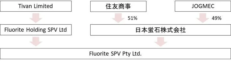 このプロジェクトのために、JOGMECと住友商事は特定目的会社である日本蛍石株式会社を通じて共同出資を行います。日本蛍石株式会社の代表は平井達社長で、探鉱費用として最大11百万豪ドルをFluorite SPVに出資する予定とのことです。このうち、JOGMECは49%を負担します。この出資により、住友商事は生産物の最大15%を引き取る権利を得ることになります。