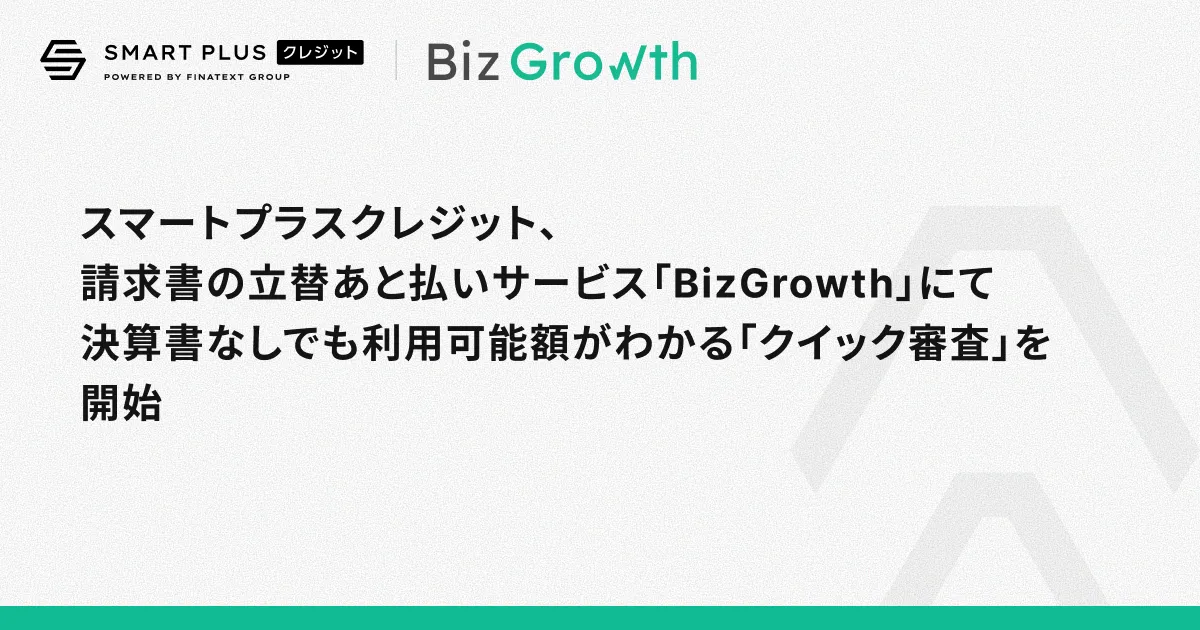 株式会社スマートプラスクレジット(以下、スマートプラスクレジット)は、請求書の立替あと払いサービス「BizGrowth」において、企業が決算書や本人確認書類を提出することなく、利用可能額を素早く知ることができる新サービス「クイック審査」を開始しました。