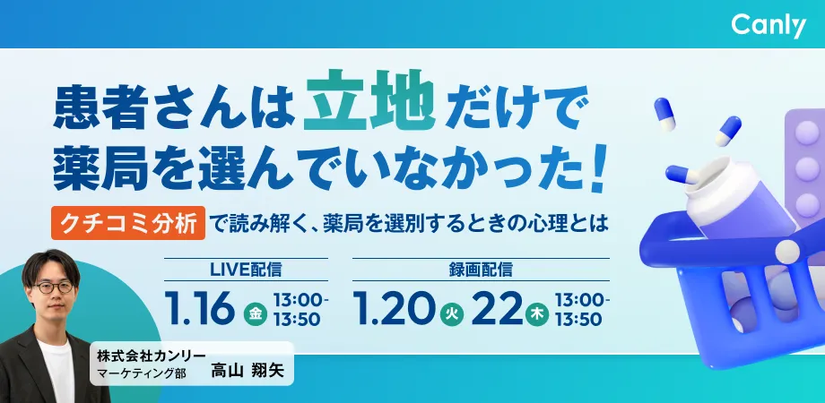 調剤薬局を選ぶ際、立地だけでなく「クチコミ」が重要な判断材料であることが明らかになってきました。株式会社カンリーが2026年1月に開催する無料セミナーでは、クチコミが薬局選びに与える影響を詳しく分析し、参加者に新しい視点を提供します。