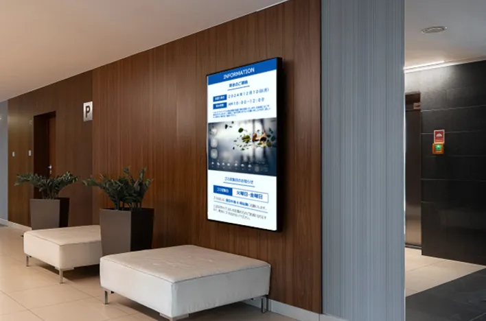 従来、マンションでは紙の掲示や回覧板が情報提供の主な手段とされてきた。しかし、デジタルサイネージを活用することにより、情報の伝達が効率化され、コスト削減が期待できる。特に、管理会社からの通知や、点検・清掃予定などを即時に表示・更新できるため、入居者は必要な情報を迅速に受け取ることが可能になる。