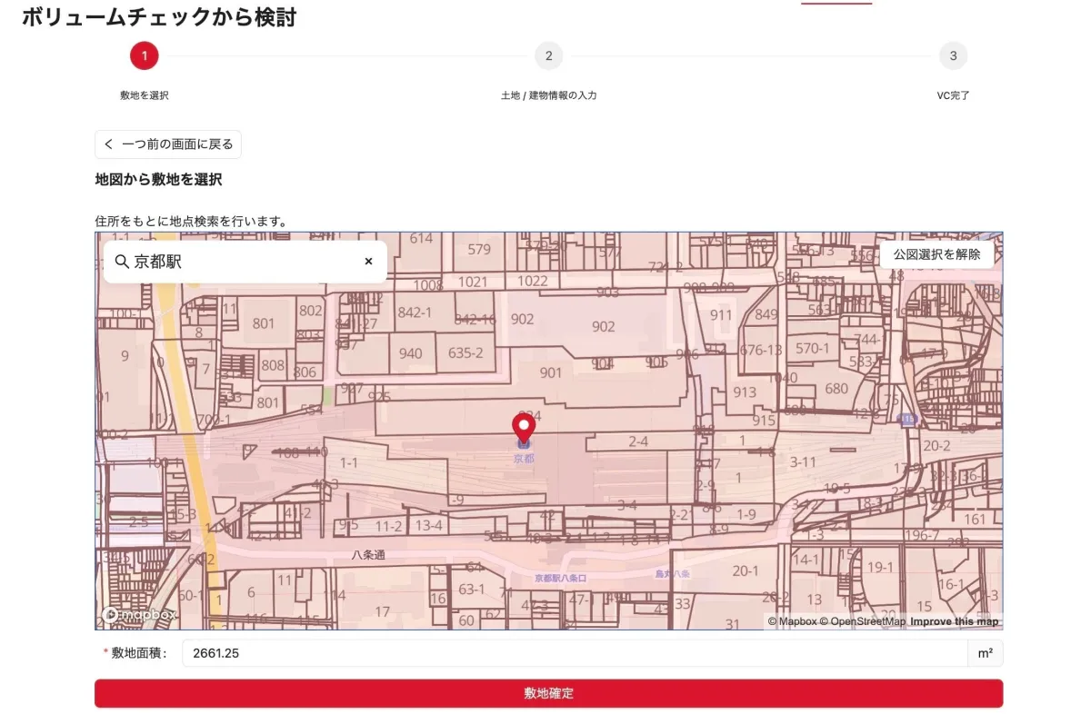 これにより、ユーザーは以前のように煩雑な手続きを経ることなく迅速にボリュームチェックを実施できるようになります。今後も、地図からの地番選択が可能なボリュームチェックの対応エリアは順次拡大され、より多くの地域での効率的な土地検討が可能になる予定です。また、この拡張により、不動産開発業者は迅速な意思決定を行うことができるようになるでしょう。