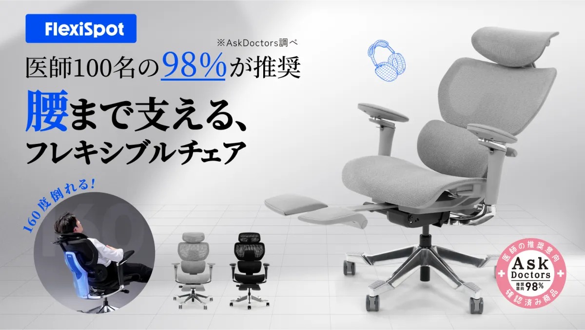 この新モデルはFlexiSpotの人気シリーズであるC7の多機能性を継承し、さらに細かな調整機能をプラスしました。特に注目すべきは、医師100名の98%が推奨しているという信頼性です。このデータは2025年5月に実施された評価結果から得られたもので、「AskDoctors医師の確認済み商品」にも認定されています。