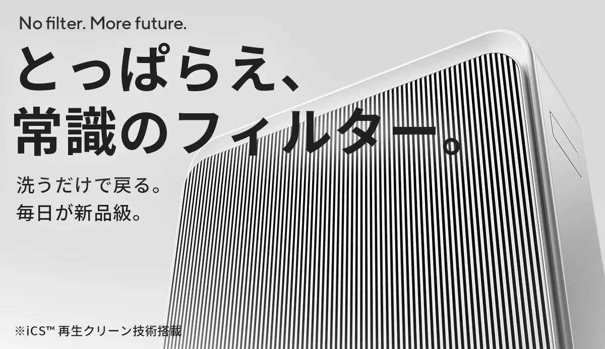 特許iCS™技術を採用した洗浄再生型フィルターは、使用者がわずか3分で水洗いするだけで性能を復元できます。このことで、HEPA式空気清浄機では年間約2万円かかるランニングコストを大幅に削減可能で、経済的負担を軽減します。