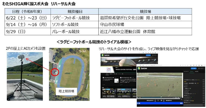 事業は令和6年6月から始まり、AIカメラをスポーツ施設に設置し、選手の動きを追跡して自動的に映像を撮影・編集する仕組みが導入されました。配信されたライブ映像を通じて、サポーターや家族は、現地に行けない場合でも試合を観戦できるメリットがあります。トライアルとして、開催された「わたSHIGA輝く国スポ・リハーサル大会」でもこの仕組みが試されました。