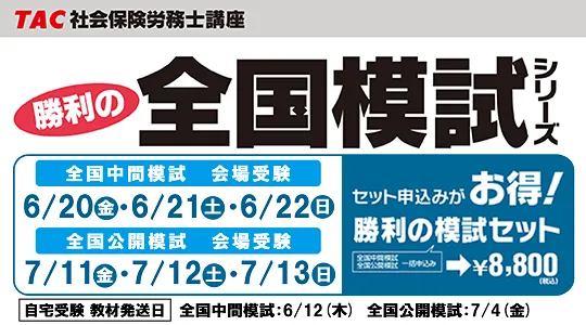 社会保険労務士試験の対策を行うTAC株式会社(東京都千代田区、代表取締役:多田敏男)は、2025年の合格を目指した「勝利の全国模試シリーズ」の申し込みを受け付けています。この模試シリーズは、受験生が自分の実力を測るために最適な機会を提供し、合格に向けた戦略的な学習をサポートします。