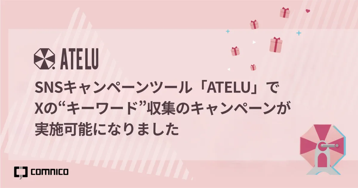 株式会社コムニコが提供するSNSキャンペーンツール「ATELU」が、X(旧Twitter)キャンペーンでのキーワード収集機能を実装しました。このアップデートは、X社が発表した「ハッシュタグ付き広告の配信停止」に伴い導入されたもので、今後のSNSマーケティングにおける新たな運営方法を提示しています。