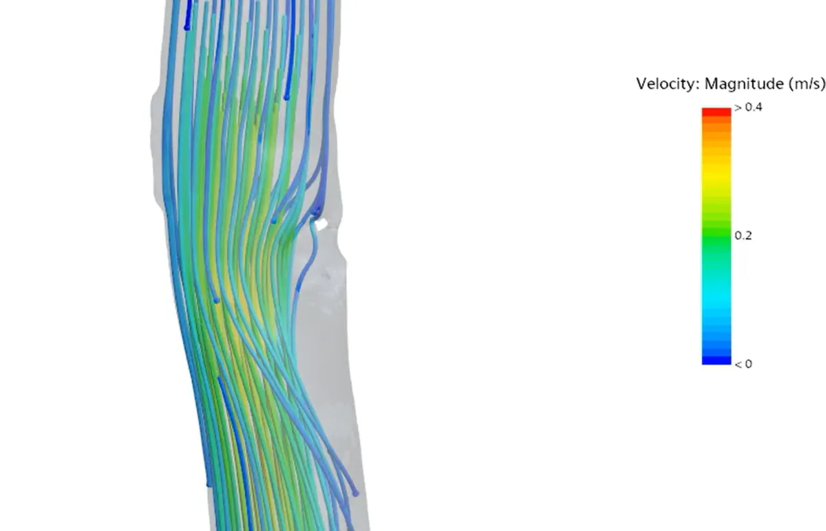 本研究では、CFD解析を実施し、SPシャント手術におけるグラフトの部分クリッピングに伴う血流の変化を観察しました。解析の結果、クリッピング部をまたいだ流路が確認され、血流の停滞が発生する領域が特定されました。さらに、血流停滞を大幅に減少させる新しいグラフト形状も発見しました。