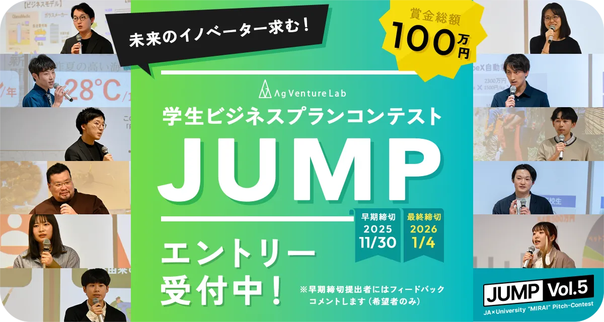 2023年11月1日、東京の千代田区に本拠を置く一般社団法人AgVenture Lab(あぐラボ)が主催する、全国規模の学生ビジネスプランコンテスト“JUMP Vol.5”のエントリー受付が始まります。このコンテストは、農業や食、生活といったテーマを通じて、社会の課題に挑戦する学生起業家を応援することを目的としています。