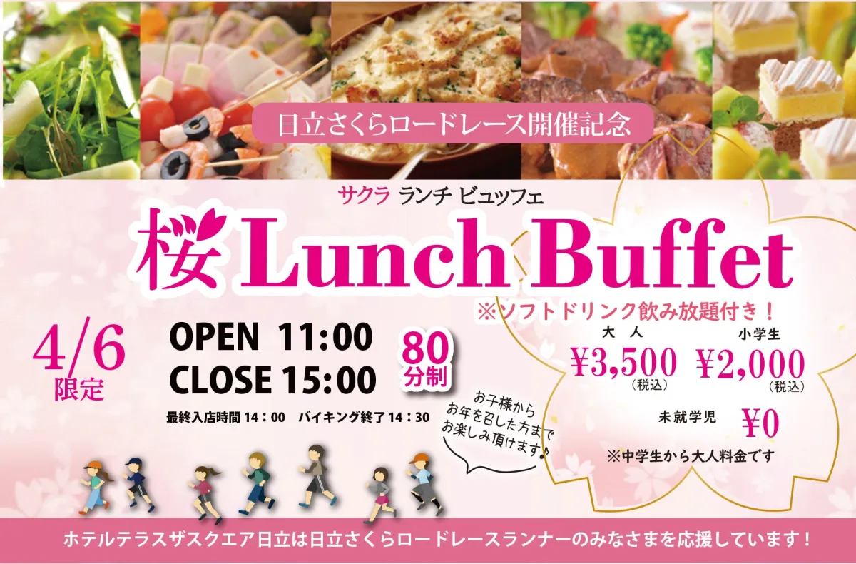 2024年4月6日(日)限定で、茨城県日立市の「ホテルテラスザスクエア日立」では特別なビュッフェが開催されます。このイベントは、日本の桜名所100選にも選ばれる平和通りの美しい景色を背景に、さくら祭りに合わせて行われるものです。この日は、幅広い年代の方に満足いただけるよう、多様な料理を提供します。